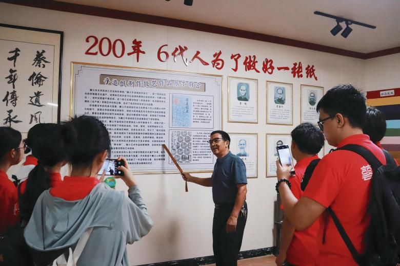 随后,队员们走进工坊观摩手造纸制作全过程,从采割剥料、刮皮到浸泡等九道工序,既让队员们感受到“一张纸,千般力”的匠心精神,也为后续文创设计积累了宝贵的工艺认知。