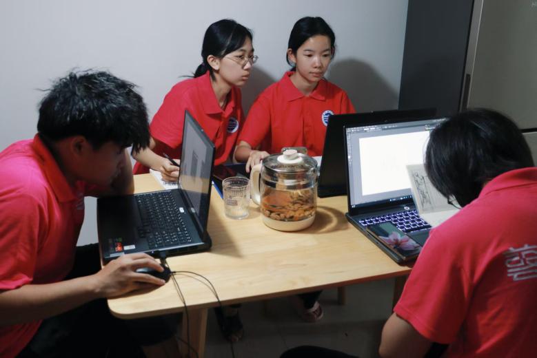 7月8日上午,实践队抵达廉江市青平镇斑鸠林村,参观廉江市日禾民间工艺社。墙上“200年6代人为了做好一张纸”的字样,激发了队员对非遗技艺的探究热情。队员们与非遗传承人曹毅进行深入交流,获取一手资料,并通过直播向观众展示廉江手造纸的发展历史、核心工序及各类非遗手造纸产品。