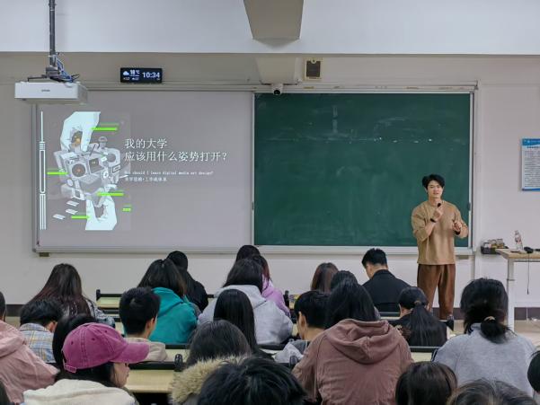 为进一步拓宽毕业生就业渠道,深化校企合作,11月18日下午,我院在7-218教室举办广州墨鱼教育科技有限公司专场就业宣讲会。墨鱼设计学院联合创始人陈其权、港澳大湾区AI创新应用开发工作室负责人熊睿应邀担任主讲嘉宾,环境设计、视觉传达设计、产品设计、数字媒体艺术四个专业的22级毕业生120余名学生到场聆听。