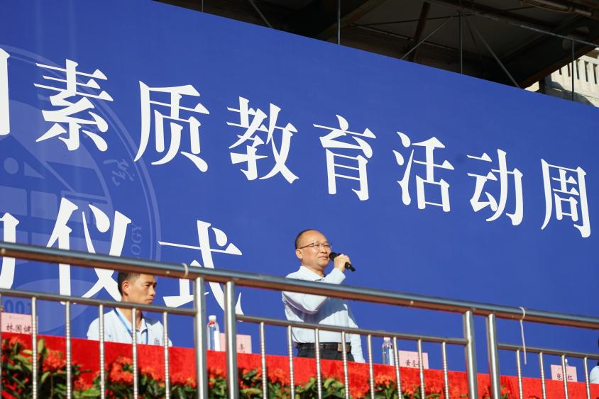 党委书记黄圣诚致辞致开幕词。首先,他对本次活动的顺利举行表示热烈的祝贺,并向积极组织参与活动的广大师生表示衷心的感谢。随后,他指出素质教育活动周是学校精心打造的教育教学品牌,是学校坚持“五育共举”的重要措施。希望同学们积极弘扬创新和工匠精神,在科技创新中积极作为,主动参与、勤于实践。