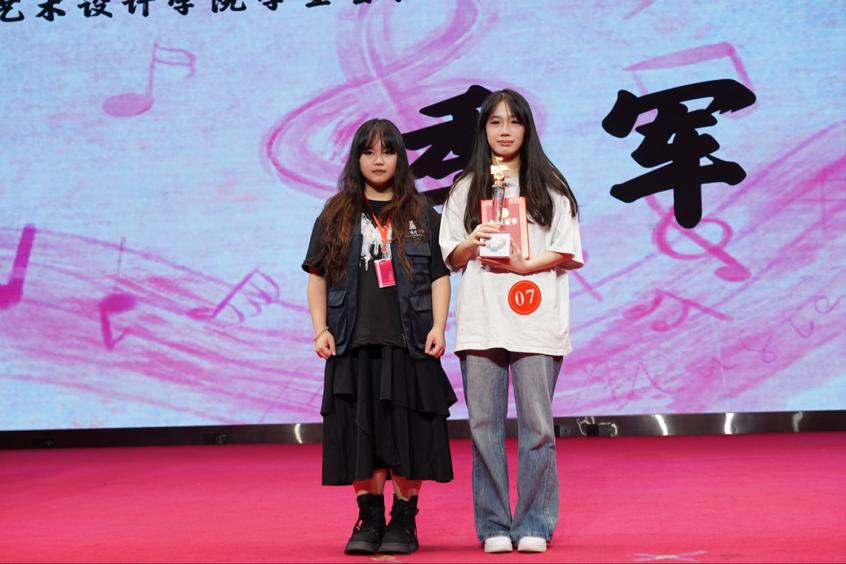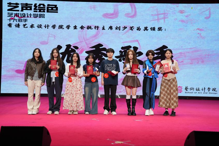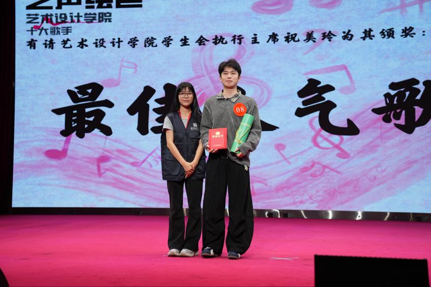 艺术设计学院团总支学生会主席刘少芬师姐为优秀歌手颁奖。