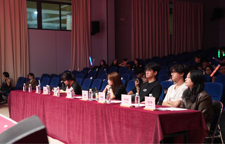 (通讯员:沈沅婷 )2025年11月9日晚,三号报告厅星光熠熠,“艺声绘色”艺术设计学院十大歌手总决赛温情启幕。来自艺设的音乐才子们齐聚于此,以歌声为笔、梦想为墨,勾勒青春模样。一曲曲深情演绎直击人心,选手与观众沉浸式共鸣,共赴这场属于音乐与热爱的浪漫之旅。本次决赛莅临现场的领导嘉宾:艺术设计学院常务副院长刘延华教授;艺术设计学院副院长方滨博士;艺术设计学院党总支副书记颜冬果老师;艺术设计学院办公室主任唐海春老师;艺术设计学院学生党支部书记黄禹彰老师;艺术设计学院团总支书记王鑫宇老师;以及艺术设计学院的辅导员老师和艺术设计学院团总支学生会主席团还有各兄弟学院代表;还有莅临本次决赛的评委有音乐舞蹈学院的伍心茹师姐、谢畅师姐、黄梓超师兄、李健鹏师兄。