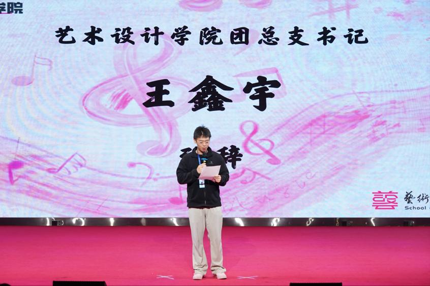 在比赛结果揭晓前,艺术设计学院团总支书记王鑫宇老师登台致辞。他先对本次十大歌手总决赛的圆满举办作出总结,随后寄语获奖选手,希望大家以歌声为翼,传递青春正能量,在追逐人生理想的道路上步履不停,为在场同学们传递了昂扬向上的奋进力量。