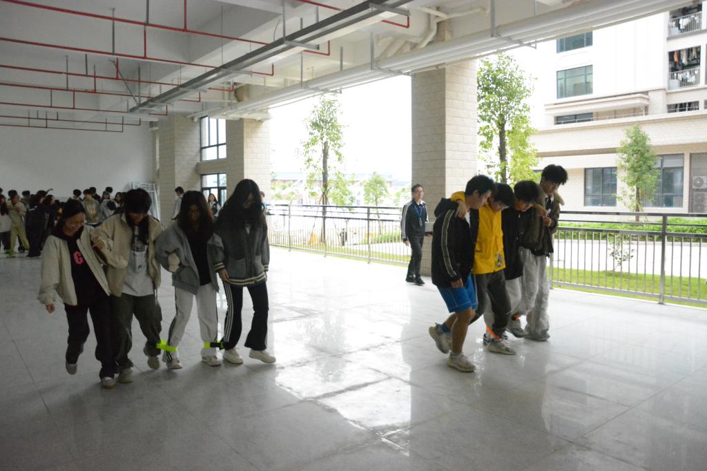 随着裁判一声令下,比赛正式拉开帷幕。各队队员肩并肩、腿绑腿,以“步调一致”的节奏向终点协力冲刺。“一二、一二”的整齐口号响彻操场,参赛队员们眼神专注、步伐统一,各队展现出不同的行进风格。部分队伍节奏稳健,沉着地向终点迈进;也有队伍凭借高度默契实现快速超越。比赛中即便偶有步调不一,队员们也能迅速调整、彼此扶持,展现出良好的团队素养与协作精神。