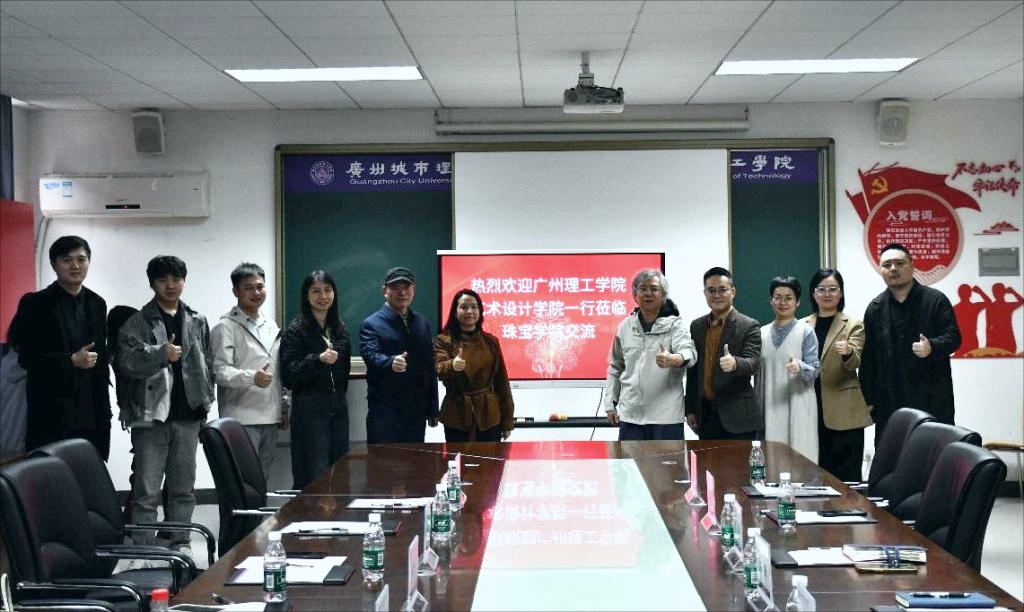 (通讯员:李俏潼)11月18日下午,为深化艺术设计专业教学改革、破解转型与人才培养难题,广州理工学院艺术设计学院党总支书记杨惠携师生代表,与广州城市理工学院珠宝学院院长张珂、党总支副书记姚勇等一众骨干教师,在广州城市理工学院珠宝学院举办交流座谈会。双方围绕专业建设、教学革新、校企合作等核心议题深度研讨,共探艺术设计教育发展新路径。