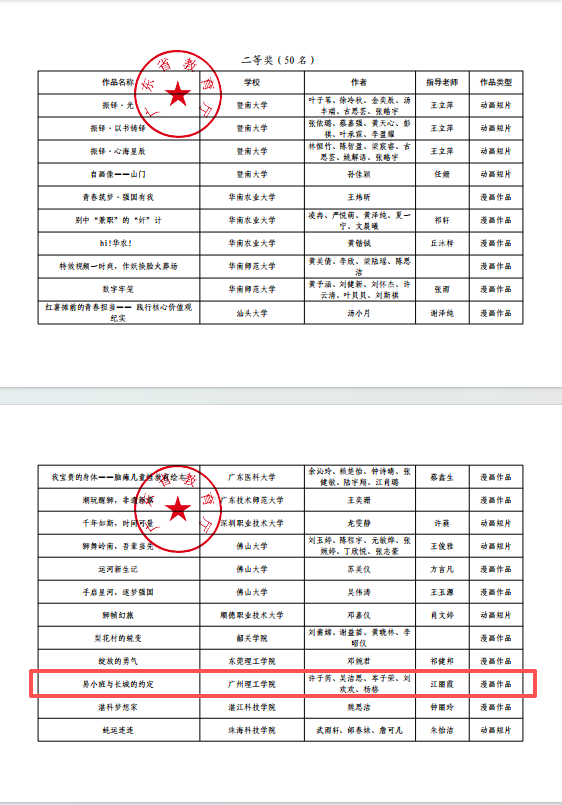 近日,广东省教育厅公布了第十届广东高校网络媒体展示节活动评审结果,我校艺术设计学院江丽霞老师指导,22视传6班许子芮、吴洁思、岑子荣、刘欢欢、杨格学子创作作品《易小班与长城的约定》荣获得“粤易色彩”动漫作品二等奖。