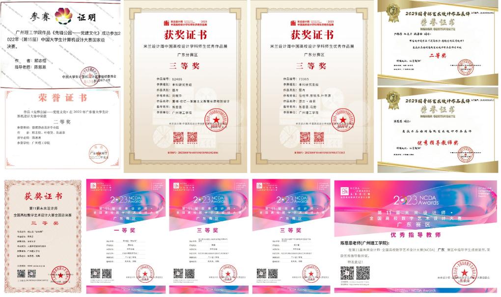 在指导学生方面,陈恩恩老师积极组织学生参与全国大学生计算机设计大赛、NCDA全国高校数字艺术设计大赛、米兰设计周高校展等重要赛事,屡获佳绩。她亦师亦友,全程陪伴学生成长,连续两年获评“优秀毕业指导老师”,并曾荣获“良好班导师”称号,体现了她在学生全面发展中的持续投入。