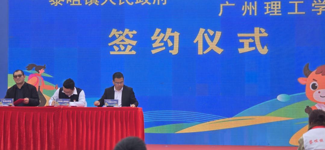 1月1日,广州理工学院与河源市龙川县黎咀镇人民政府正式签署教学实践基地共建合作协议,双方将聚焦农文旅融合、乡村空间改造、非遗文创开发三大核心领域,开展深度校地协同合作。广州理工学院艺术设计学院常务副院长刘延华、副院长方滨,创新创业学院副院长阴凡,人文学院周鲁峰博士,艺术设计学院李伍香老师、继续教育学院龙辉老师一行,赴黎咀镇参与元旦节庆活动并开展实地调研。
