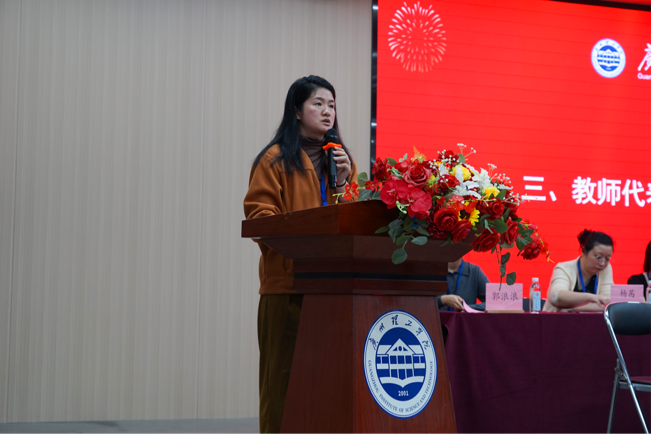 学生代表陈慧敏在动员大会上发言,她以学生干部身份发出倡议,号召全体党员亮身份、做表率,学生干部扛责任、显担当。她重点提出两项要求:一是严守课堂纪律,不迟到早退,规范手机使用,专注高效学习;二是规范日常行为,杜绝拖鞋进教室,保持环境整洁,做到文明有礼。她呼吁大家以严谨态度和务实作风,营造优良学习氛围,以最佳状态迎接本科教学工作合格评估,共同为学校发展和自身成长贡献青春力量。