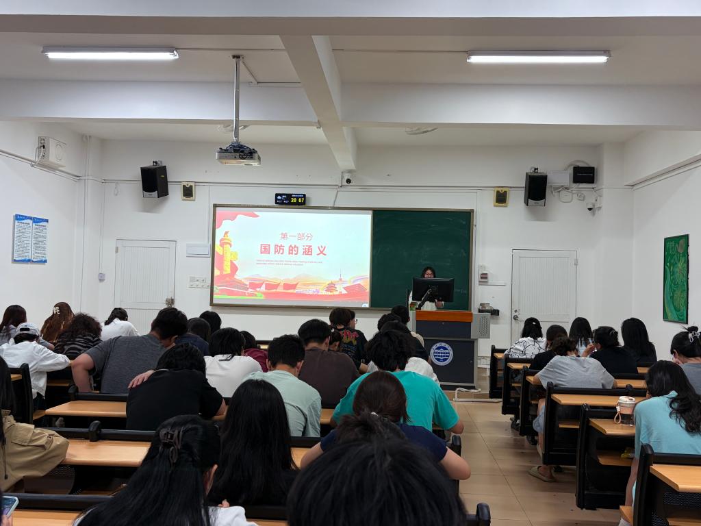 班会上,辅导员围绕“国防涵义、我国国防基本情况、现代化国防建设、国防事业发展历程”四个方面展开系统讲解。从国防是国家为防备抵抗侵略、保卫主权统一与领土完整的核心职能,到我国自卫型国防方针、周边安全形势;从陆、海、空、火箭军等现代化军队建设,到“两弹一星”等国防重大成就,全面展现我国国防从弱到强的发展轨迹。