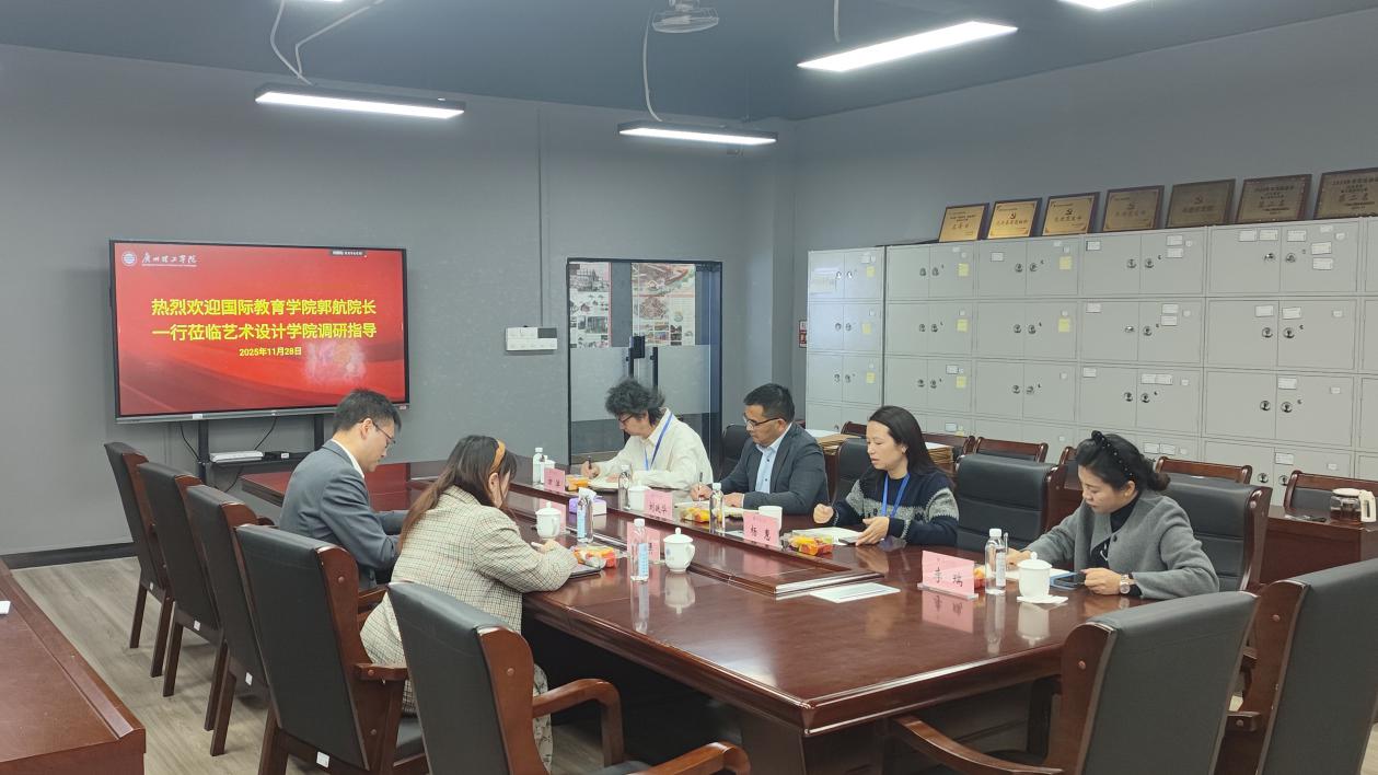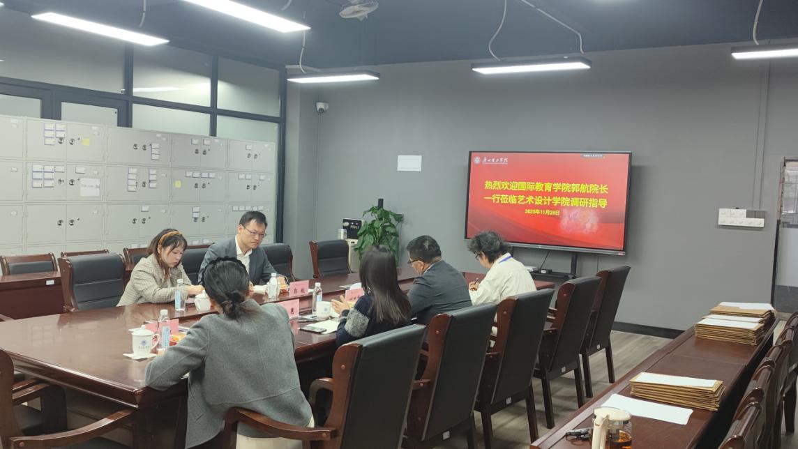 郭航院长认真听取了介绍,对艺术设计学院鲜明的专业特色与在国际化建设中取得的进展给予了充分肯定。他介绍了国际教育学院在来华留学教育、学生海外交流项目、中外合作办学以及师资国际化能力提升等方面的资源整合与政策支持。郭航院长表示,艺术设计学具有跨文化传播优势,是推进教育国际化的重要载体,国际教育学院愿与艺术设计学院加强联动,围绕特色项目共建、师生全球竞争力培养等方面进一步提供支持与服务。