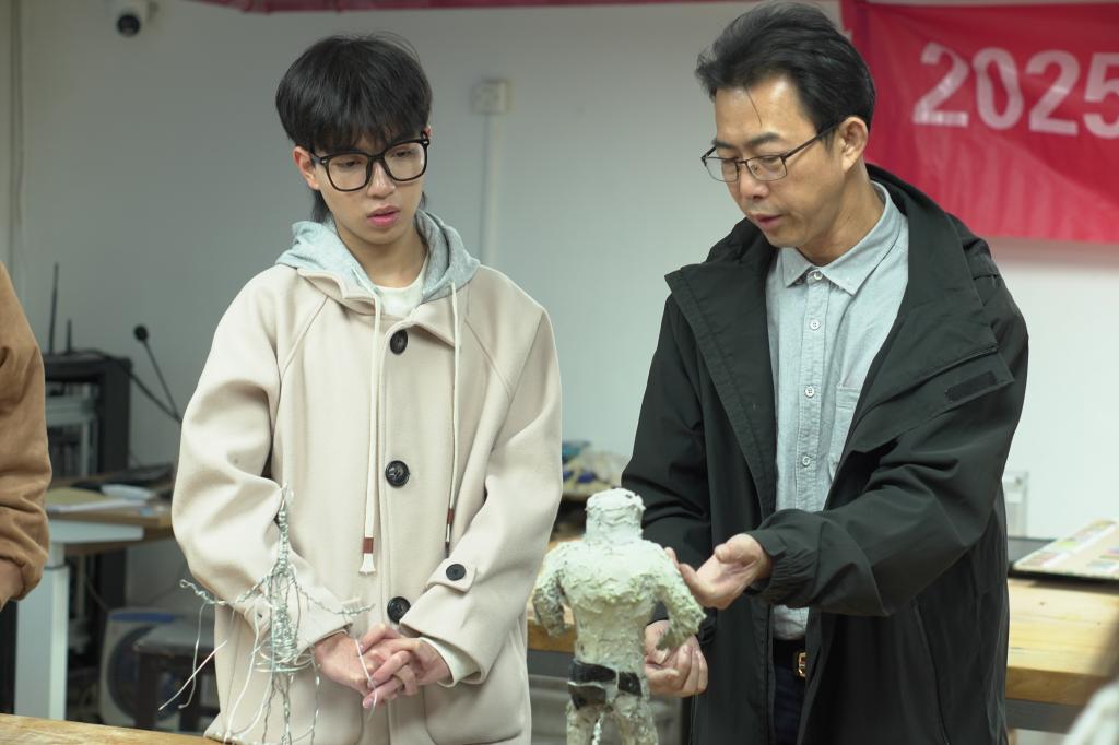 在指导现场,同学们向许少鹏老师汇报各自的作品进度,针对不同的创作作品,许老师给出了许多专业性的建议。