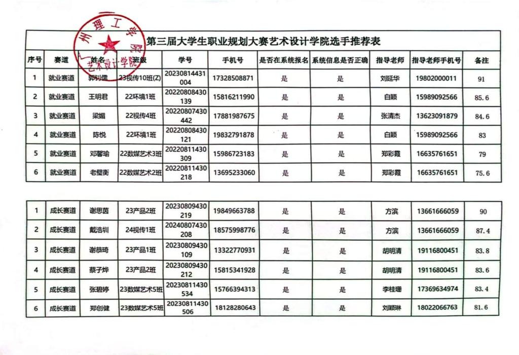根据广州理工学院办公室,广州理工办函(2025)132号《关于举办第三届大学生职业规划大赛(含首次设立课程教学赛道)的通知》,我院于11月30日开展院内选拔赛。经由学生本人提出申请、二级学院现场评审、严格审核、评分评估等多个环节,现将入选名单予以公示。