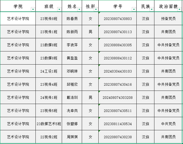 根据《广州理工学院办公室关于开展2025年“大学生年度人物”推选展示活动的通知》文件精神,落实立德树人根本任务,树立大学生榜样,充分展现我院学子风采,对符合申请条件的同学,经个人自荐、民主评议、学院评审等环节,评选出2025年艺术设计学院“大学生年度人物”,现将名单予以公示:
