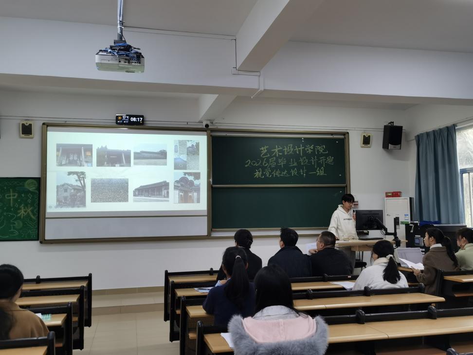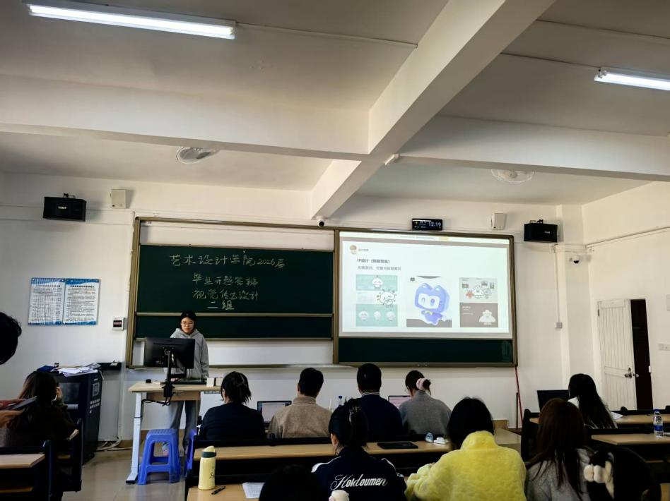 近日,视觉传达设计专业26届毕业设计开题答辩于7-401、7-410、7-316等6个教室顺利举行。本次答辩由视觉传达设计专业教研室组织承办,专业内多名资深教师组成评审团,26届全体毕业生参与。答辩旨在严把毕业设计质量关,帮助学生明确设计方向与创作路径,为后续设计实践奠定坚实基础。答辩分六组于六个教室进行,每组由4位专业资深教师担任评委。前期,各评审组长统筹安排了答辩流程、评审标准与分组细则,评审教师提前审阅学生开题报告,并就研究背景、设计主题、创新点等关键内容进行了梳理与准备。