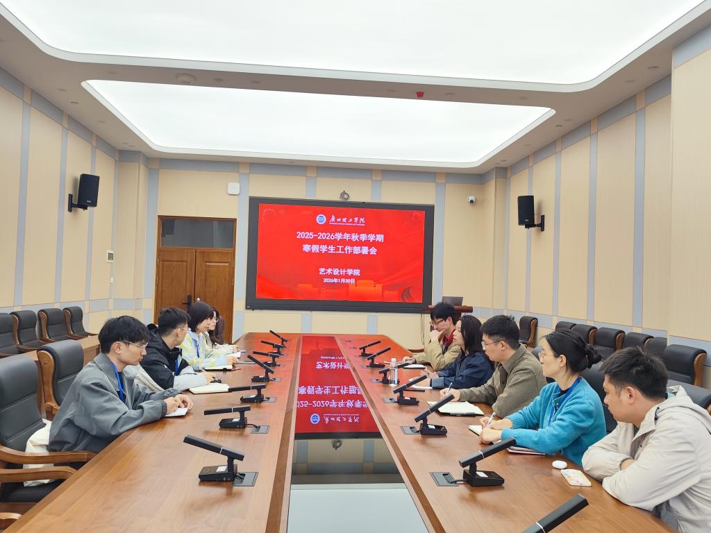 为全面落实学校寒假学生工作部署,筑牢学生假期安全防线,确保全院学生度过安全、健康、充实的寒假,1月30日,艺术设计学院召开2025-2026学年寒假学生工作部署会。学院党总支杨惠书记主持会议,全体辅导员参会,会议总结本学期学生工作,部署寒假重点任务。