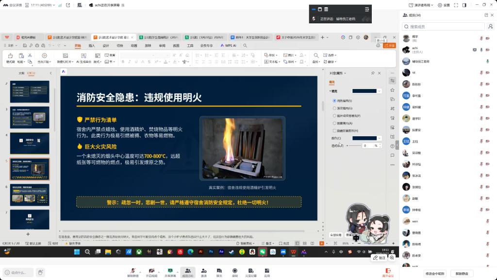 学院党委副书记强调,宿舍安全是校园稳定的基础,要求全体学生树立“安全第一”意识,将安全规范转化为日常习惯。此次线上班会突破时空限制,实现全员覆盖,有效提升学生安全防范能力,为构建平安校园注入新动力。