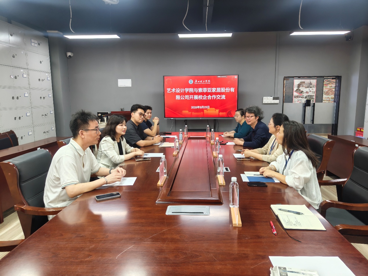 3月26日,索菲亚家居集团工会副主席及政企业务总监赵康婷、政企业务代表刘子健、人力资源经理卢国民及优秀毕业生校友陈俊铭一行到访艺术设计学院。学校工会办公室主任彭洁、学院副院长方滨、辅导员杨茜、就业老师苏雅珏共同参与座谈,会议由学院党总支书记杨惠主持。双方围绕校企人才共育、就业实习合作、校友资源联动、教职工专属福利等议题开展深度交流,为学院人才培养、学生就业及校企协同发展搭建更紧密的合作桥梁。