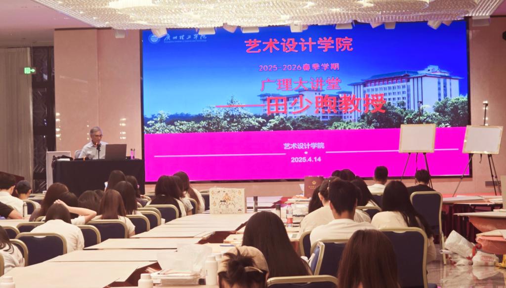 讲座过程中,田少煦教授紧扣应用型艺术人才培养需求,结合自身在数字媒体艺术、人工智能艺术及传统工艺数字化传承等领域的深厚造诣,为师生们带来了一场前沿的学术分享。田教授不仅深入剖析了数智时代下视觉传播与图形艺术的演变逻辑,还结合非物质文化遗产保护等实践案例,探讨了艺术设计如何服务于大湾区文化创意产业发展。副院长方滨在主持时指出,“艺术设计大讲堂”旨在通过引入行业顶尖学术资源,强化实践教学与理论前沿的深度融合,为学院应用型专业建设提供强有力的学术支撑。